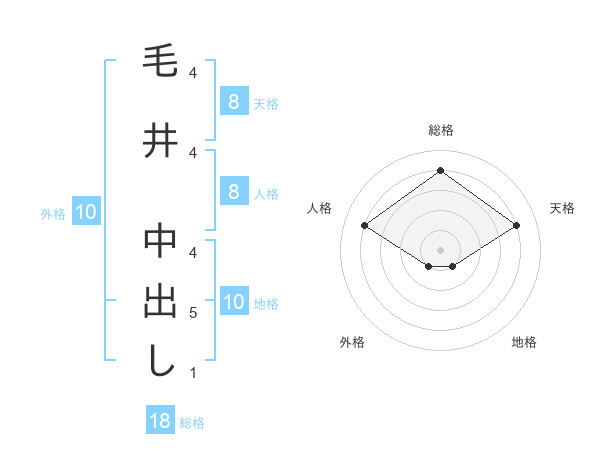 毛井 中出しさんの総格は18画の4点!