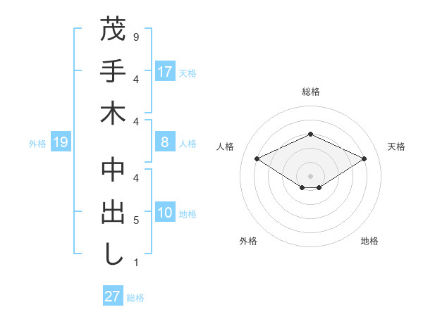 茂手木 中出しさんを姓名の画数から五運を鑑定