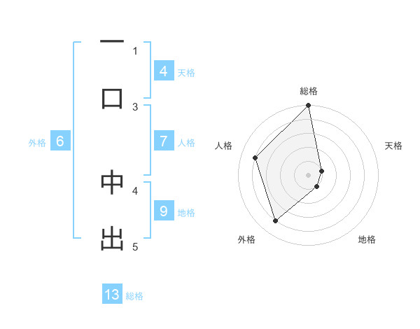 一口 中出さんの総格は13画の5点!
