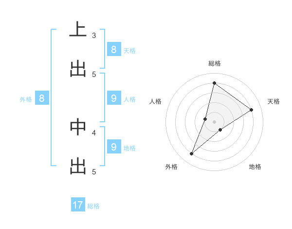 上出 中出さんの総格は17画の4点!