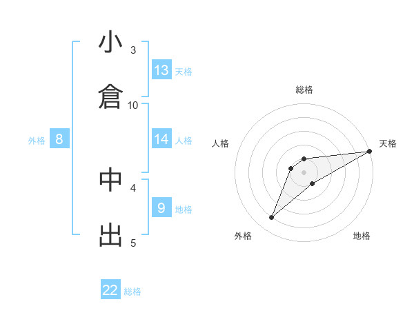 小倉 中出さんの総格は22画の1点!