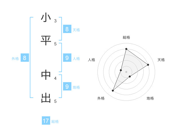 小平 中出さんの総格は17画の4点!