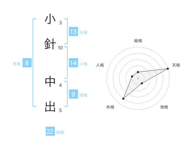 小針 中出さんの総格は22画の1点!