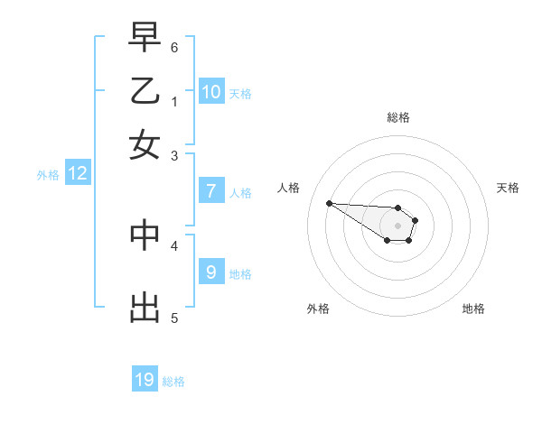 早乙女 中出さんを姓名の画数から五運を鑑定