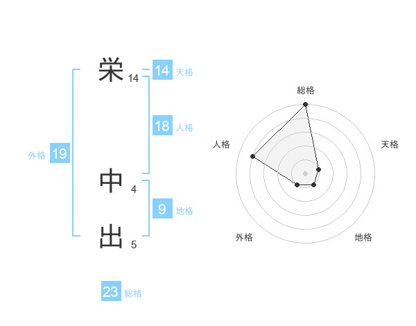 栄 中出さんの総格は23画の5点!