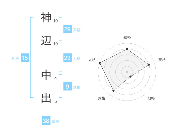 神辺 中出さんの総格は38画の4点!