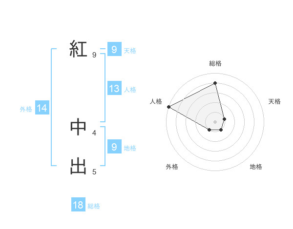 紅 中出さんの総格は18画の4点!