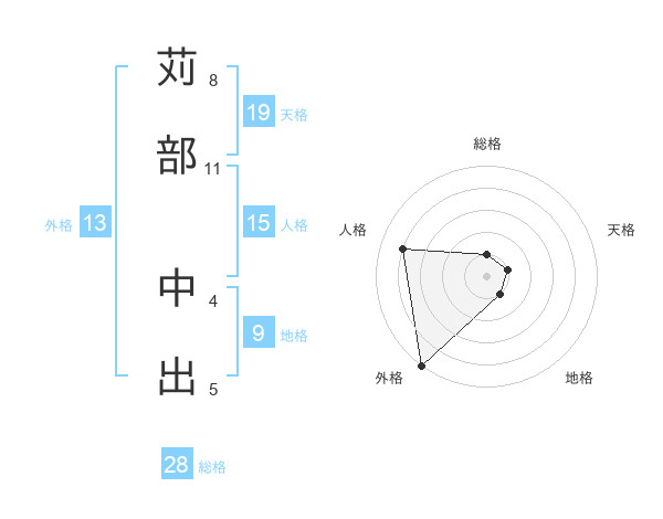 性格や才能などを表す2番目に重要な運勢です。人間関係や協調性、社会的な成功に影響します。主に20歳から50歳ぐらいまでの中年期の運勢を表します。