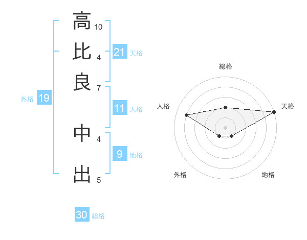 高比良 中出さんの天格は21画の5点!
