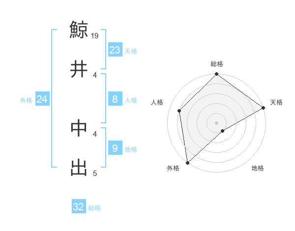 鯨井 中出さんを姓名の画数から五運を鑑定