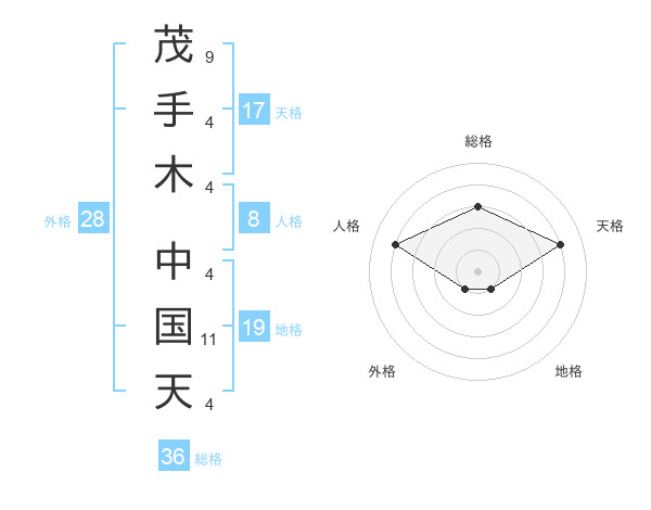 茂手木 中国天さんを姓名の画数から五運を鑑定