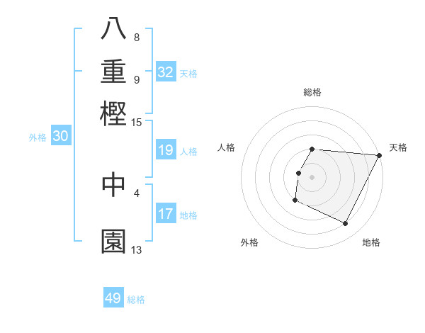 八重樫 中園さんを姓名の画数から五運を鑑定