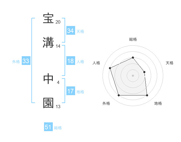 宝溝 中園さんの総格は51画の3点!