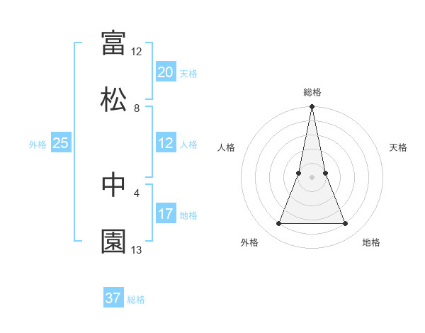 富松 中園さんの総格は37画の5点!