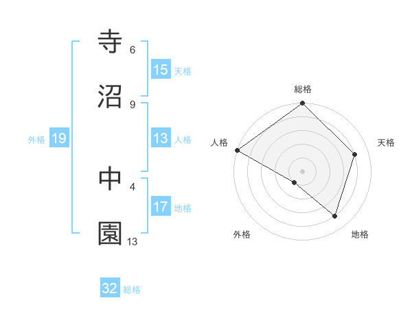 寺沼 中園さんの総格は32画の5点!
