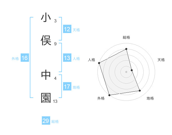 小俣 中園さんの総格は29画の4点!