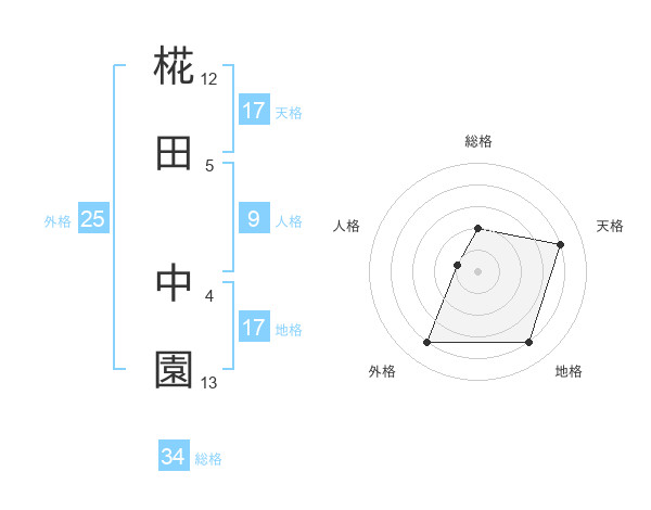 椛田 中園さんの天格は17画の4点!