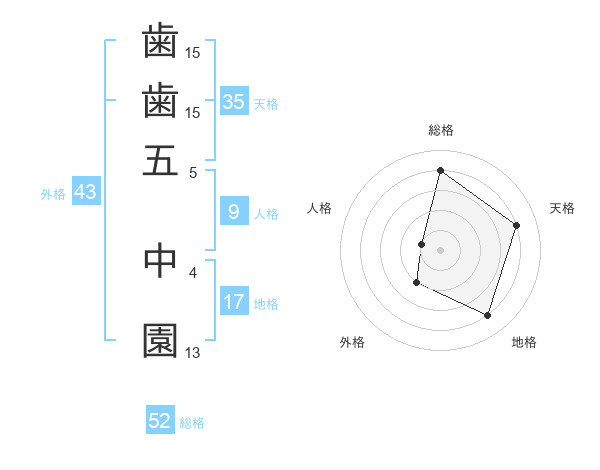 歯歯五 中園さんの総格は52画の4点!