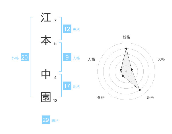 江本 中園さんの総格は29画の4点!