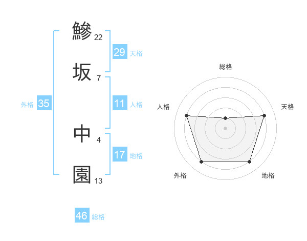 鰺坂 中園さんの天格は29画の4点!