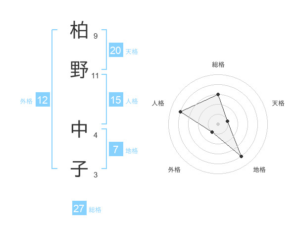 柏野 中子さんの総格は27画の3点!