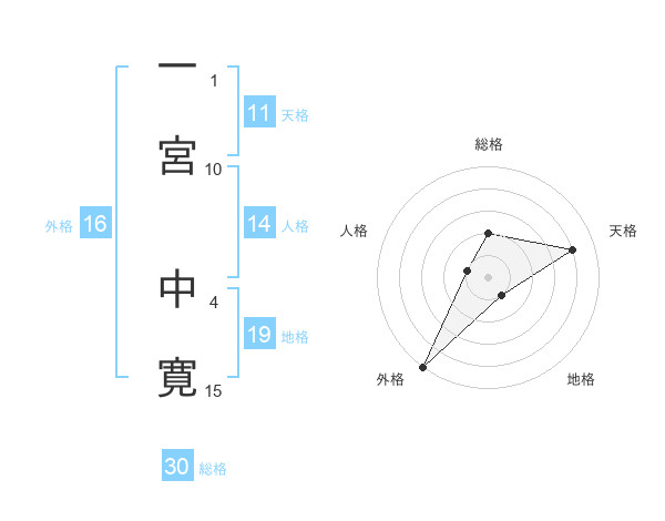 一宮 中寛さんの外格は16画の5点!