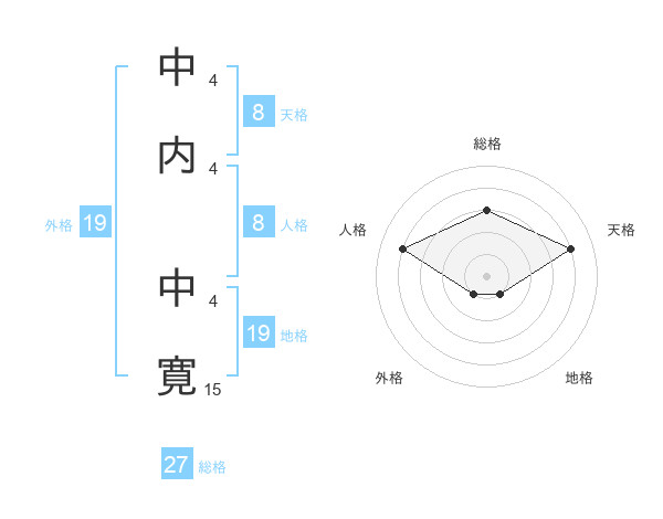中内 中寛さんの総格は27画の3点!