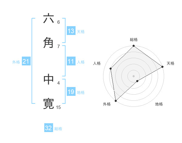 六角 中寛さんの総格は32画の5点!