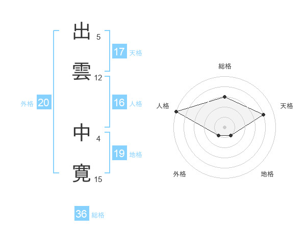 出雲 中寛さんを姓名の画数から五運を鑑定