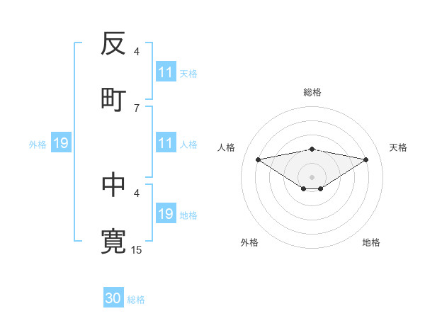 反町 中寛さんの総格は30画の2点!