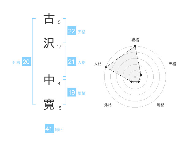 古沢 中寛さんの総格は41画の5点!