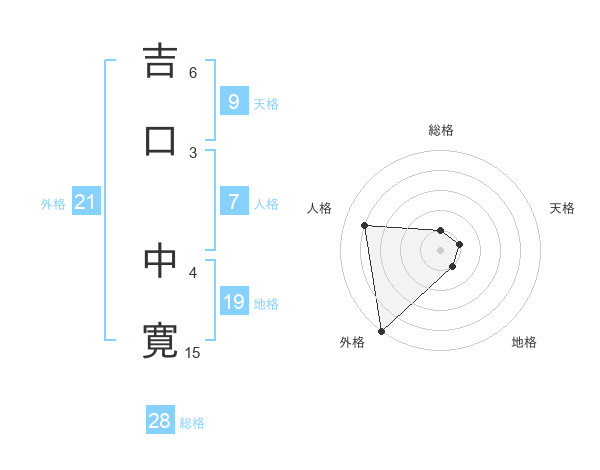 吉口 中寛さんの外格は21画の5点!