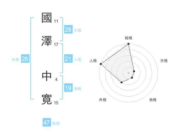 國澤 中寛さんを姓名の画数から五運を鑑定