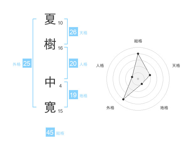 夏樹 中寛さんの総格は45画の4点!