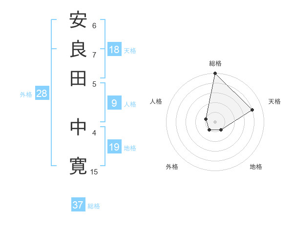 安良田 中寛さんの総格は37画の5点!