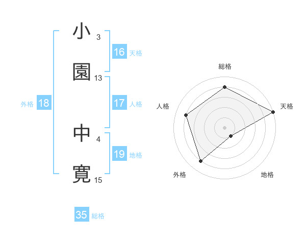 小園 中寛さんの総格は35画の4点!