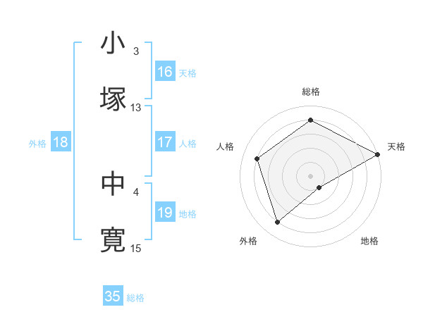 小塚 中寛さんを姓名の画数から五運を鑑定