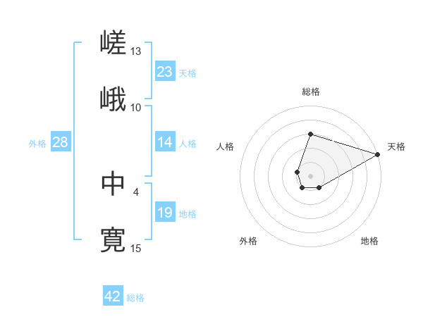 嵯峨 中寛さんの天格は23画の5点!