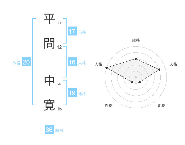 平間 中寛さんの天格は17画の4点!