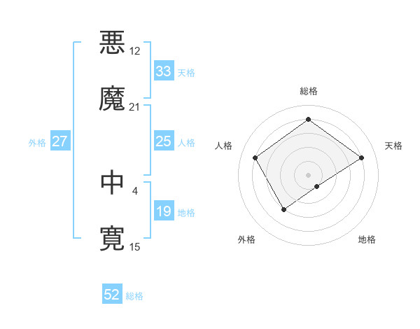 悪魔 中寛さんを姓名の画数から五運を鑑定