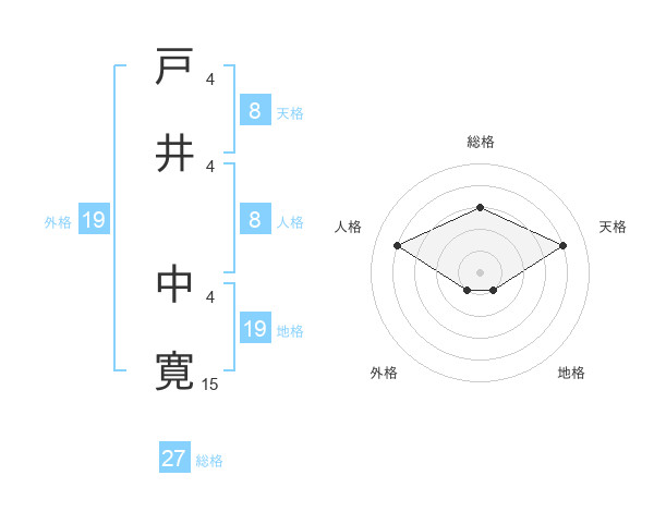 戸井 中寛さんの総格は27画の3点!