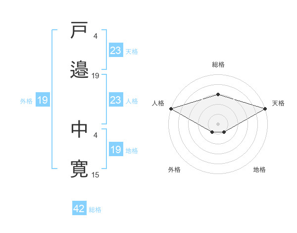 戸邉 中寛さんの天格は23画の5点!