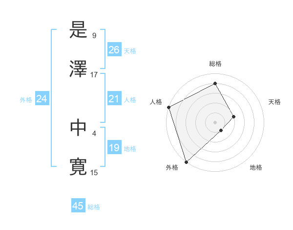 是澤 中寛さんの外格は24画の5点!