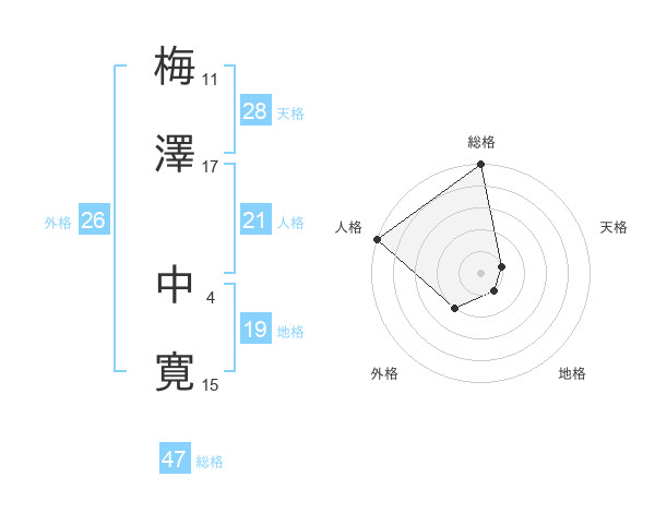 梅澤 中寛さんの天格は28画の1点!