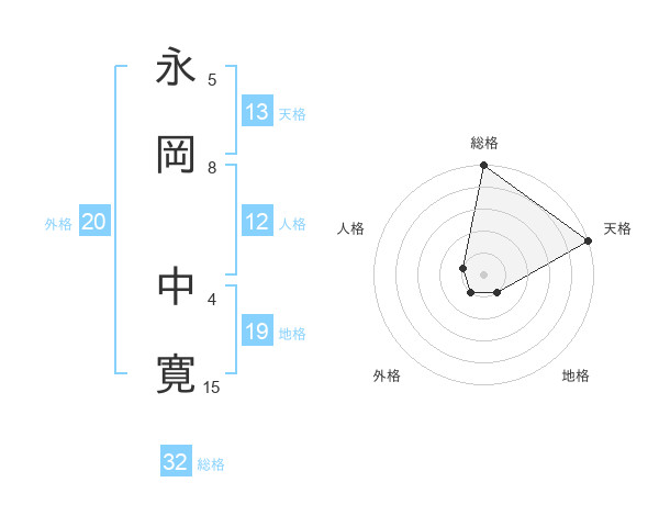 永岡 中寛さんの総格は32画の5点!