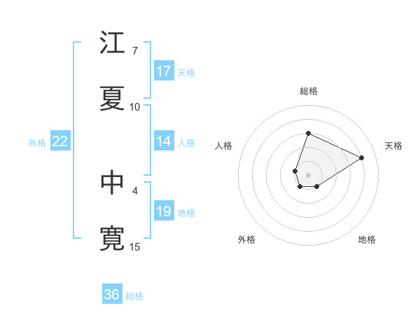 江夏 中寛さんの天格は17画の4点!