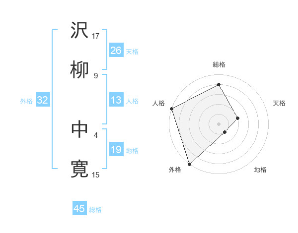 沢柳 中寛さんを姓名の画数から五運を鑑定