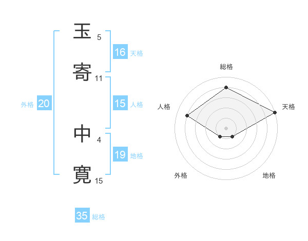 玉寄 中寛さんの総格は35画の4点!
