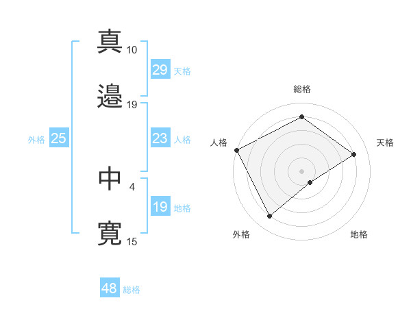 真邉 中寛さんを姓名の画数から五運を鑑定