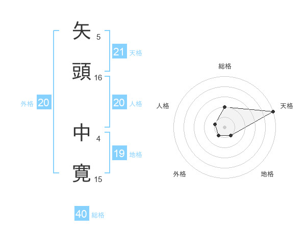 矢頭 中寛さんの天格は21画の5点!